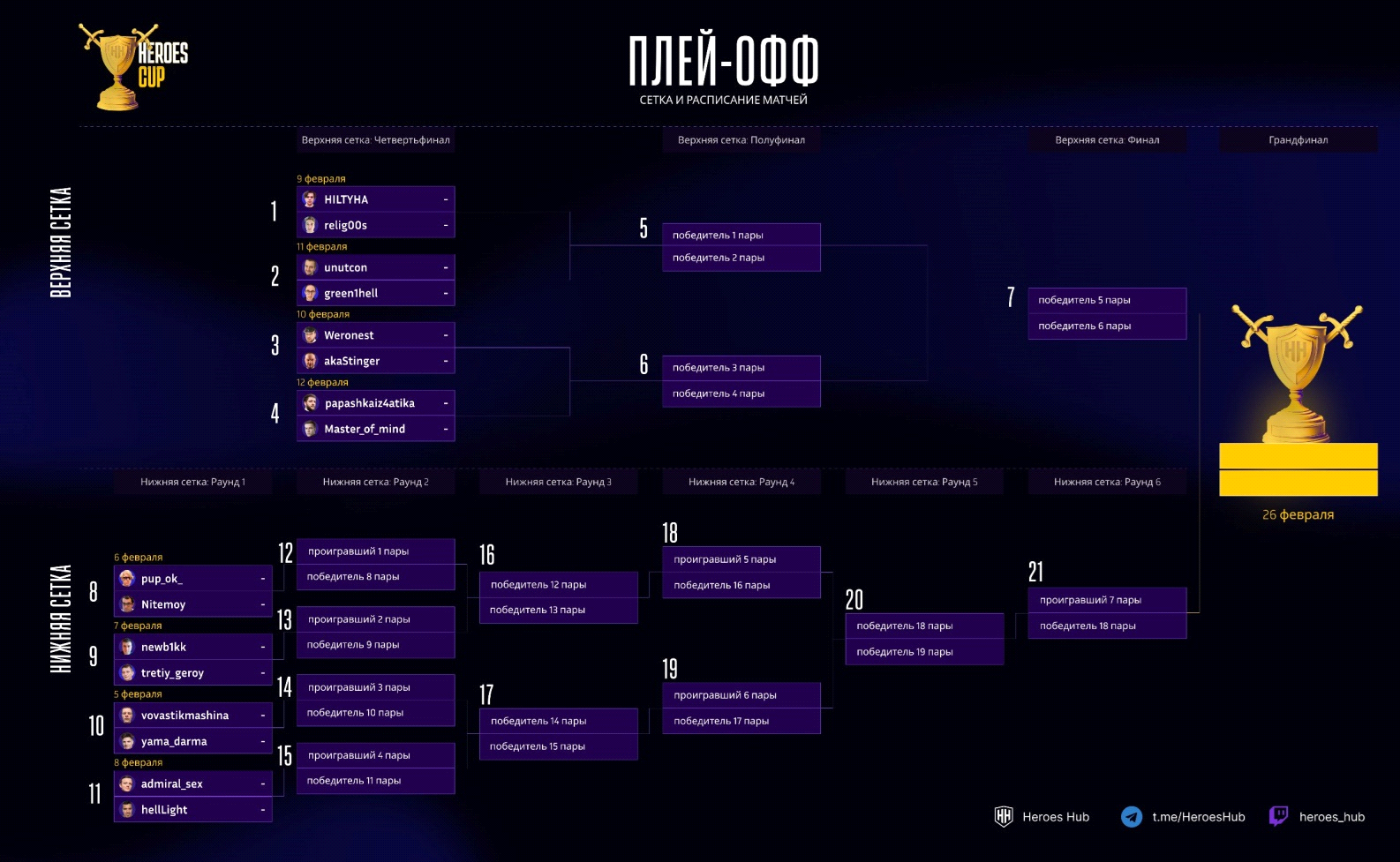 - HeroesHub оставляет за собой право выдать техническое поражение.